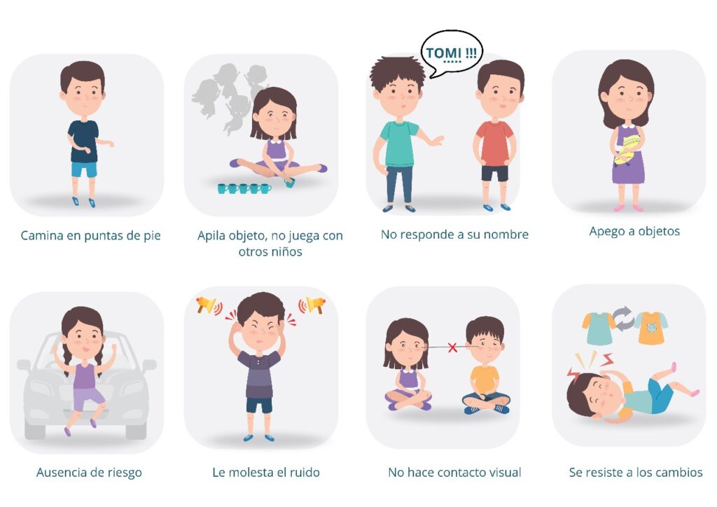 Algunos niños no responden a su nombre. Parecen sordos. Sobrepasan el año y medio sin que el lenguaje aparezca o presentan alteraciones en el lenguaje o en su modo de uso como repetir lo que escuchan (ecolalia).nuestros hijos no va acorde a los hitos del desarrollo. No les gusta jugar con otros niños o rehúyen la interacción social.